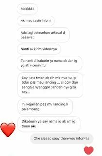 "Mbak ini ngerasa diperlecehkan oleh lelaki itu, katanya laki-laki itu menyenggol-nyenggol di bagian lain. Nah lo, salut banget buat mbaknya, jadi cewek harus berani jangan sampai mau dilecehkan. Kejadian ini pesawat baru saja landing dengan manja," tulis keterangan tersebut.